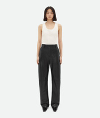 Nappa leather trousers. Product Details - Nappa leather trousers - Zip, button and hook closure - Rounded leg - Material: 100% lambskin - Color: Black - Made in: Italy - Product code: 797751V3WT01000 Size & Fit - Model is 178 cm | 5'10" and is wearing a Bottega Veneta size 38