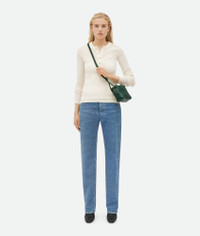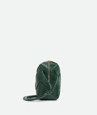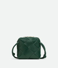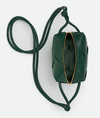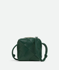 Cross-body bag realised with Intreccio craftsmanship in soft lambskin leather. Product Details - Mini Intreccio leather cross-body bag - Single compartment - Zipper closure - Material: Lambskin - Lining: Calfskin bonded Intreccio - Color: Emerald Green - Hardware: Gold finish - Height: 14.5 cm | 5.7" - Width: 14.5 cm | 5.7" - Depth: 7.5 cm | 3" - Strap drop: 55 cm | 21.7" - Made in: Italy - Product code: 701915VCQC23049 Size & Fit - Fits iPhone 15 Pro Max, a credit card case, airpods and keys.