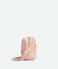 Cross-body bag realised with Intreccio craftsmanship in soft lambskin leather. Product details • Mini Intreccio leather cross-body bag • Single compartment • Zipper closure Material: 100% Lambskin • Lining: Calfskin bonded Intreccio • Color: Lotus • Hardware: Gold finish • Height: 14.5 cm | 5.7" • Width: 14.5 cm | 5.7" • Depth: 7.5 cm | 3" • Strap drop: 55 cm | 21.7" Made in: Italy Size & fit • Fits iPhone 15 Pro Max.
