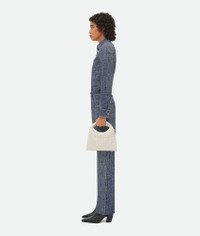 Cross-body bag with Intrecciato craftsmanship in calf leather with detachable strap. Product Details - Mini Intrecciato leather cross-body bag with detachable strap - One internal zippered pocket - Flap closure secured with magnet - Material: calfskin - Lining: Calfskin - Color: White - Hardware: Brass finish - Height: 14.5 cm | 5.7" - Width: 25.5 cm | 10" - Depth: 11 cm | 4.3" - Handle drop: 10 cm | 3.9" - Strap drop: 58 cm | 22.8" - Made in: Italy - Product code: 777586V3IV19156 Size & Fit - Fits iPhone 15 Pro Max, a credit card case, airpods and keys.