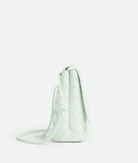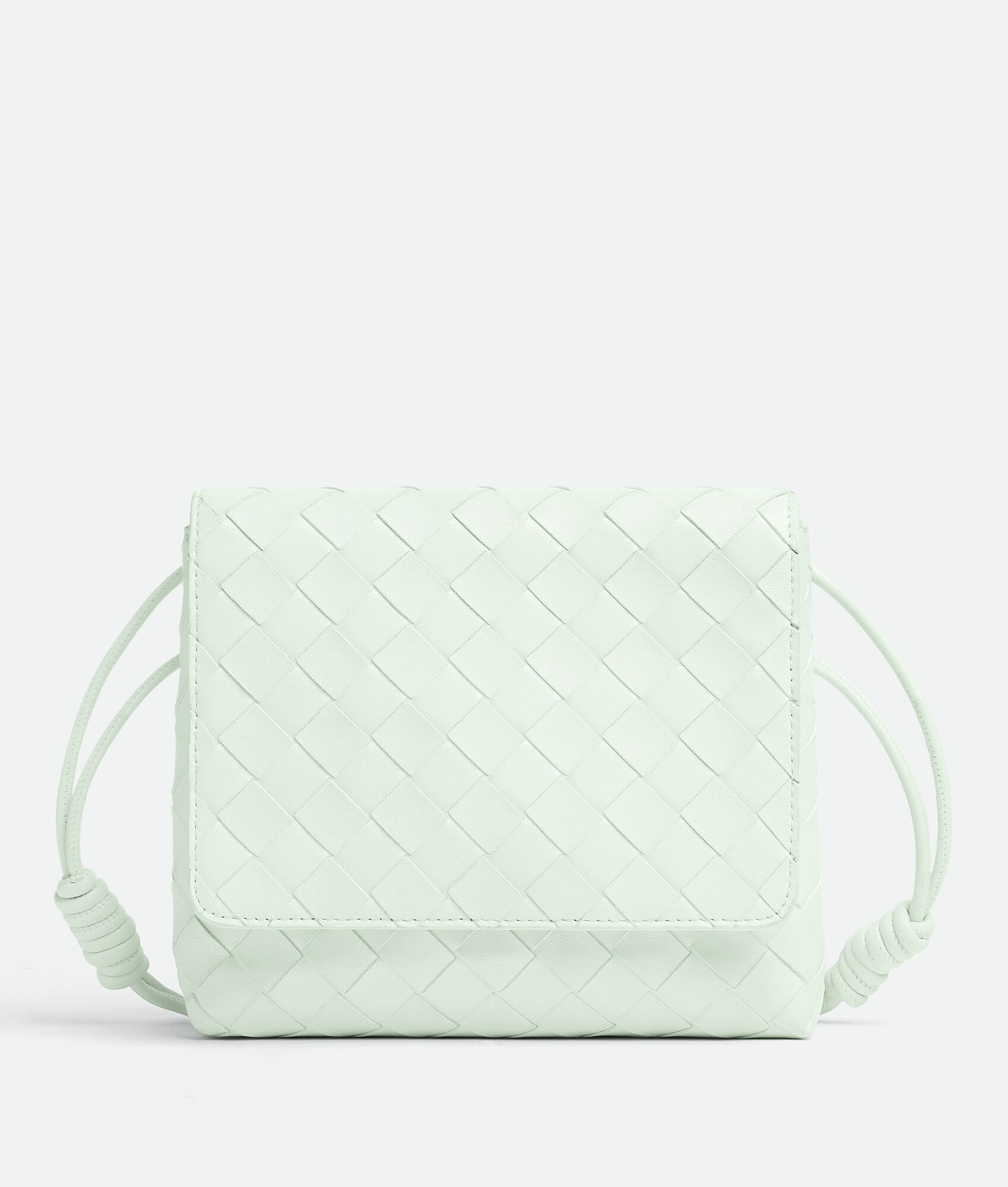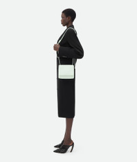 • Mini Intrecciato leather cross-body bag with adjustable sliding strap • Two main compartments, one interior zippered pocket • Press stud closure Material: 100% Lambskin • Lining: Calfskin • Color: Glacier • Hardware: Gold finish • Height: 15 cm | 5.9" • Width: 19 cm | 7.5" • Depth: 6 cm | 2.4" • Strap drop: 40 cm | 15.7" Made in: Italy