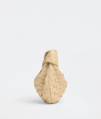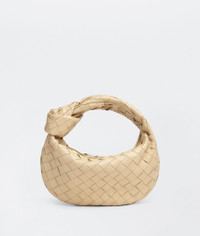 Top handle bag in lambskin leather with soft rounded shape and signature knot made Product details • Mini Intrecciato leather top handle bag • Single compartment • Zipper closure Material: 100% Lambskin • Lining: Calfskin • Color: Porridge • Hardware: Gold finish • Height: 23 cm | 9.1" • Width: 28 cm | 11" • Depth: 8 cm | 3.1" • Handle drop: 10 cm | 3.9" Made in: Italy