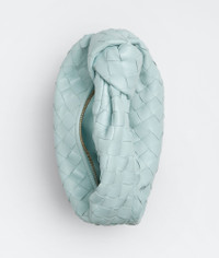 • Mini intrecciato leather top handle bag • Single compartment • Zipper closure Material: 50% Lambskin, 50% Calfskin • Lining: Calfskin • Color: Teal Washed • Hardware: Gold finish • Height: 23 cm | 9.1" • Width: 28 cm | 11" • Depth: 8 cm | 3.1" • Handle drop: 10 cm | 3.9" Made in: italy