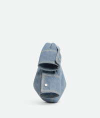 Top handle bag with soft rounded shape in nubuck leather with a denim shirt effect Product Details - Mini top handle bag in printed nubuck recalling a knotted denim shirt - Single compartment - Zip closure - Material: Lambskin - Lining: Lambskin - Color: Blue Washed/Sunflower Pearl - Hardware: Silver finish - Height: 10 cm | 3.9" - Width: 28 cm | 11" - Depth: 8.5 cm | 2.6" - Handle drop: 9 cm | 3.5" - Made in: Italy - Product code: 796652V4JG08645 Size & Fit - Fits iPhone 15 Pro Max.