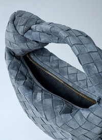 Mini Jodie leather handbag in Intrecciato weave. - Knotted top handle - Top zip fastening - Intrecciato weave - One main compartment - Made in Italy - 100% Leather - Color: Grey - Code: 651876 V1QE0 1035