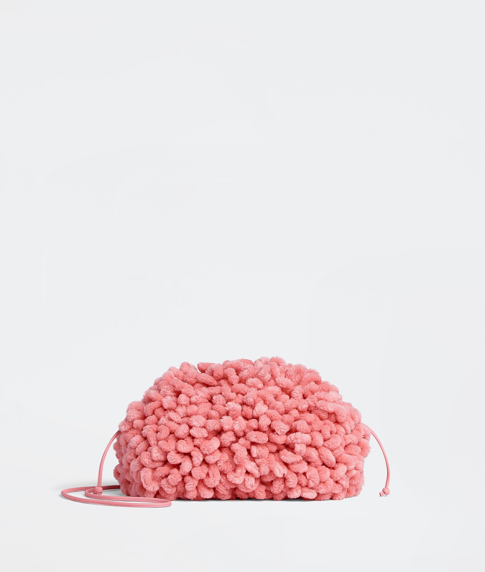 • Mini-mop effect twisted chenille clutch with strap • Single compartment • Magnetic frame closure Material: 100% Nylon • Lining: Lambskin • Color: Marshmallow/Popsicle • Hardware: Silver finish • Height: 17 cm | 6.7" • Width: 29 cm | 11.4" • Depth: 12 cm | 4.7" • Strap drop: 66 cm | 26" Made in: italy