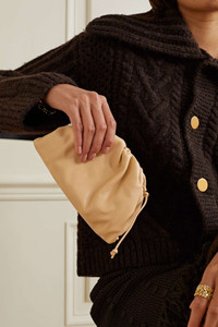 • Mini leather clutch with strap • Single compartment • Magnetic frame closure Material: 100% Calfskin • Lining: Calfskin • Color: Almond • Hardware: Gold finish • Height: 13 cm | 5.1" • Width: 22 cm | 8.6" • Depth: 5 cm | 1.9" • Strap drop: 66 cm | 25.9" Made in: italy