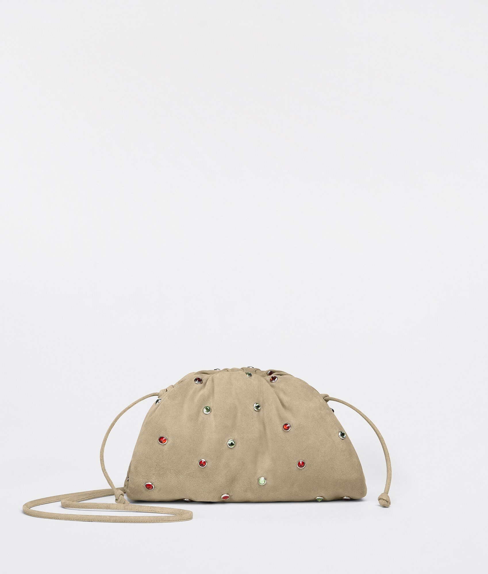 • Mini suede and rhinestones • Single compartment • Magnetic frame closure Material: 100% Calfskin • Lining: Suede • Color: Sesame • Hardware: Gold finish • Height: 13 cm | 5.1" • Width: 22 cm | 8.6" • Depth: 5 cm | 1.9" • Strap drop: 66 cm | 25.9" Made in: italy