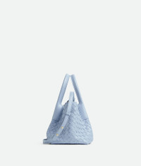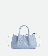 Tote bag in Intrecciato silky calf leather with adjustable and detachable strap. Product Details - Small Intrecciato silky calfskin tote bag with adjustable and detachable strap - Single detachable interior zippered pocket - Material: calfskin - Lining: Suede - Color: Lunar-Fondant - Hardware: Brass finish - Height: 15 cm | 5.9” - Width: 24 cm | 9.4" - Depth: 12cm | 4.7” - Handle drop: 11 cm | 4.3” - Made in: Italy - Product code: 819004V5AG11456