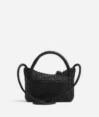 Cross-body bag in Intreccio leather with sculptural sphere detail and detachable Product Details - Mini Intreccio leather cross-body bag with detachable strap - Single compartment - Flap closure with muse brass sphere embellishment - Material: calfskin - Unlined - Color: Black - Hardware: Brass finish - Height: 16.5 cm | 6.5" - Width: 20 cm | 7.9" - Depth: 7 cm | 2.8" - Handle drop: 8.5 cm| 3.3" - Strap drop: 45 cm | 17.7" - Made in: Italy - Product code: 776755V2EZ41019 Size & Fit - Fits iPhone 15 Pro Max, a credit card case, airpods and keys.