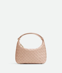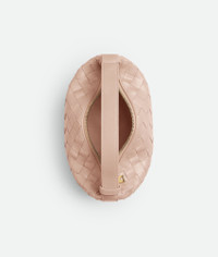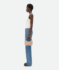 Shoulder bag realised with Intrecciato craftsmanship in soft calfskin leather. Product details • Mini Intrecciato leather shoulder bag • One main compartment • Zippered closure Material: 100% Calfskin • Lining: Calfskin • Color: Lotus • Hardware: Gold finish • Height: 13 cm | 5.1" • Width: 23 cm | 9.1" • Depth: 9.5 cm | 3.7" • Shoulder drop: 9 cm | 3.5" Made in: Italy Size & fit • Fits iPhone 15 Pro Max.