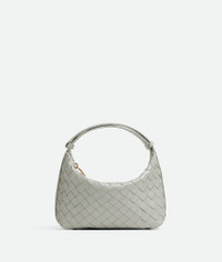 Shoulder bag realised with Intrecciato craftsmanship in calfskin leather. Product details • Mini Intrecciato leather shoulder bag • One main compartment • Zippered closure Material: 100% Calfskin • Lining: Calfskin • Color: Agate Grey • Hardware: Gold finish • Height: 13 cm | 5.1" • Width: 23 cm | 9.1" • Depth: 9.5 cm | 3.7" • Shoulder drop: 9 cm | 3.5" Made in: Italy