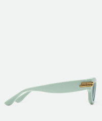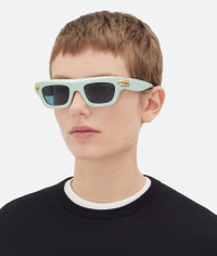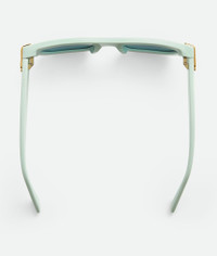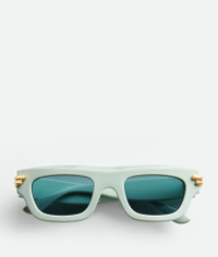 Square sunglasses made with Eastman Acetate Renew, an acetate with 27% recycled content. Product Details - Lenses made from polyamide with 39% bio-based content - BV1321S 004 - Material: Eastman Acetate Renew, including 27% recycled material - Color: Green - Made in: Japan - Product code: 799389V2Q303342