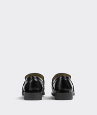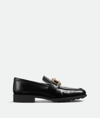 • Glossy leather loafer Material: 100% Calfskin • Lining: Lambskin • Color: Black • Hardware: Gold finish • Rubber outsole Made in: Italy