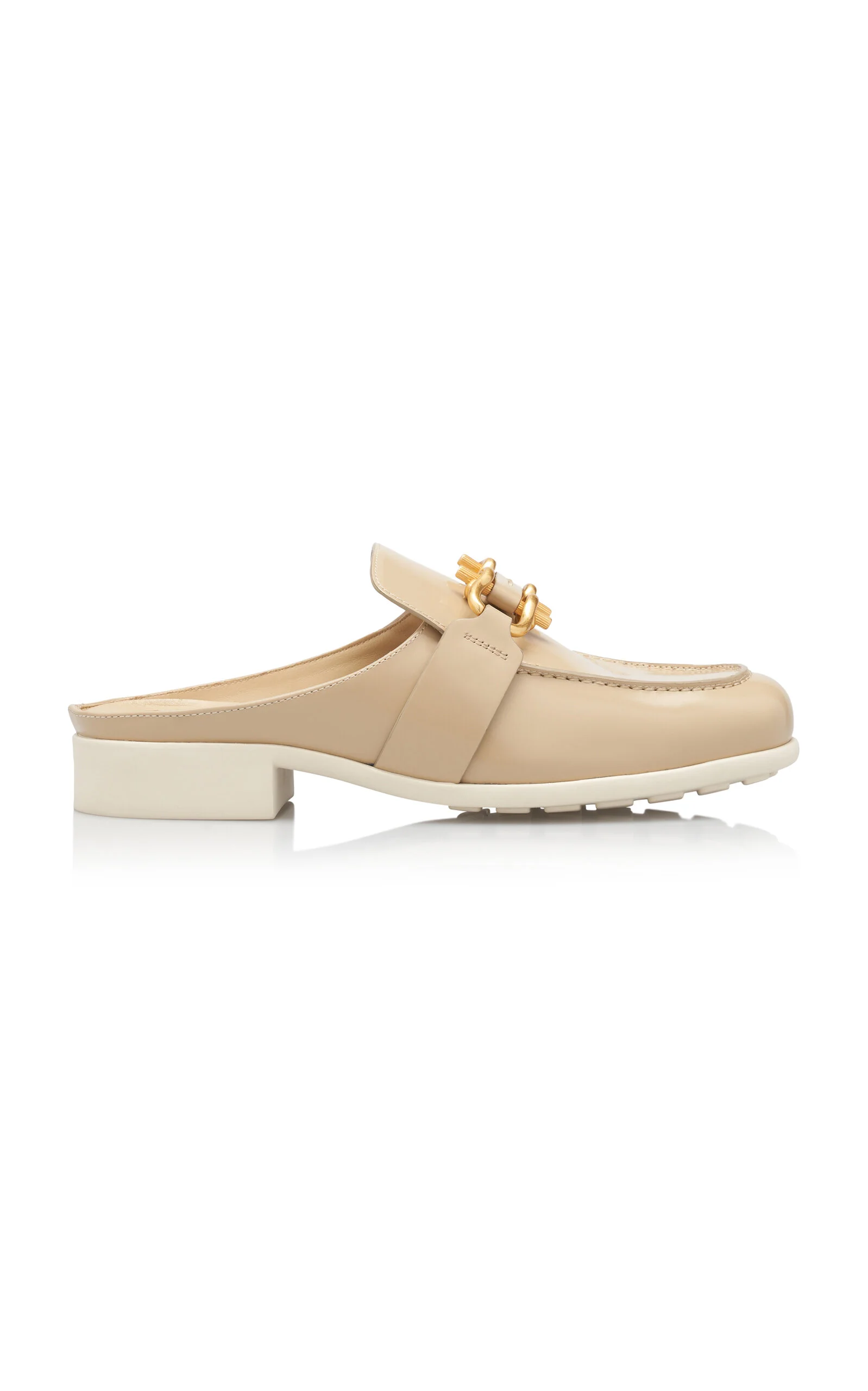 Since his debut, designer Matthieu Blazy has leaned into Bottega Veneta's foundations, delivering new iterations of brand signatures. Meticulously crafted from glossy leather, these slip-on mules have a classic loafer silhouette topped with brass hardware that nods to house codes. The rubber-gripped soles ensure easy footing. PRODUCT DETAILS - Slip on - Composition: leather - Designer color: Cane Sugar - Made in Italy