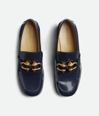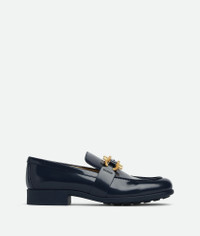 Glossy leather loafers. Product Details - Glossy leather loafers - Material: Calfskin - Lining: Lambskin - Color: Abyss - Hardware: Gold finish - Made in: Italy - Product code: 708902V28R04259