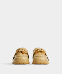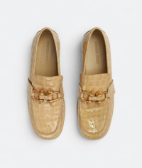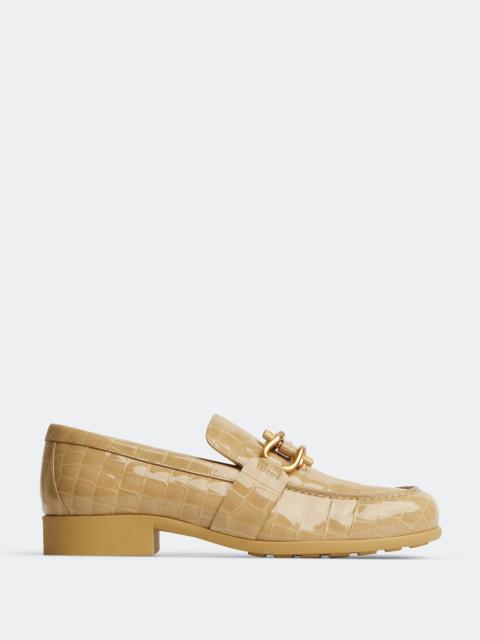 Croc-embossed glossy leather loafers. Product details • Croc-embossed glossy leather loafers Material: 100% Lambskin • Lining: Lambskin • Color: Praline • Hardware: Gold finish • Lugged rubber outsole Made in: Italy