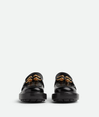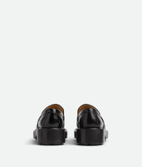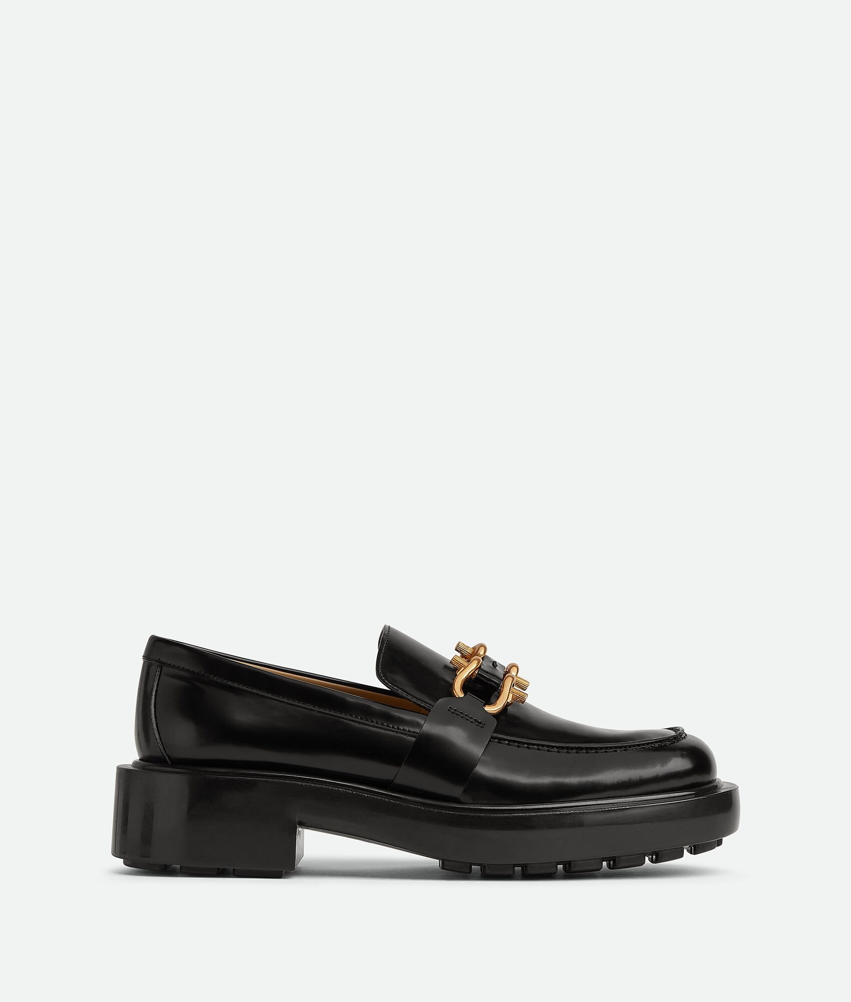 Chunky glossy leather loafers. Product Details - Chunky glossy leather loafers - Material: calfskin - Lining: Calfskin - Color: Black - Hardware: Gold finish - Lugged rubber outsole - Flatform: 6 cm | 2.4" - Made in: Italy - Product code: 729880V28R01000