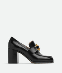 Glossy leather pumps. Product Details - Glossy leather pumps - Material: Calfskin - Lining: Calfskin - Color: Black - Hardware: Gold finish - Rubber-injected leather outsole - Heel: 7 cm | 2.8" - Made in: Italy - Product code: 754301V2JB01000