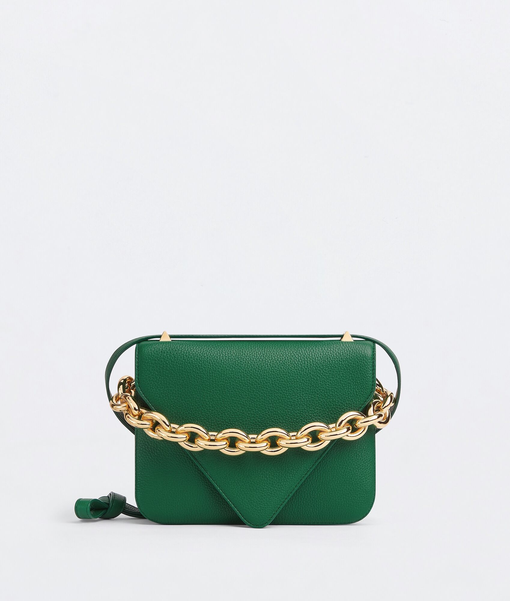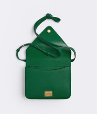 • Small grained leather envelope bag • Detachable strap • Single interior pocket • Metal closure Material: 100% Calfskin • Lining: Lambskin • Color: Jungle • Hardware: Gold finish • Height: 16 cm | 6.2" • Width: 21 cm | 8.3" • Depth: 4 cm | 1.6" • Strap drop: 50 cm | 19.7" Made in: italy