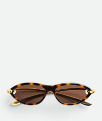 Product Details - Lenses featuring cutouts to highlight the knot detail on both sides - Full metal temples with an aerodynamic shape - Lenses made from polyamide with 39% bio-based content - BV1390S 002 - Color: Havana/Brown - Made in: Italy - Product code: 821447VBL801315 Material - Material: Injected acetate, Metal