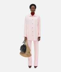 Shirt in fluid stretch viscose with notebook pattern. Product Details - Notebook fluid stretch viscose shirt - Button closure - Oversized fit - Material: 94% viscose, 4% elastane, 2% polyester - Color: Pink/Blue - Made in: Italy - Product code: 797480V4NE05081 Size & Fit - Model is 178 cm | 5'10" and is wearing a Bottega Veneta size 38