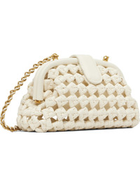 Woven and knotted buffed calfskin shoulder bag · Fixed cable chain shoulder strap · Magnetic press-stud fastening at hinged closure · Zip pocket at interior · H6" x W11" x D4.5" Supplier color: Bone/Brass Calfskin. Made in Italy 251798F048046