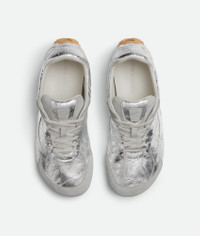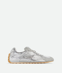 Low-top lace-up sneaker in laminated leather. Product Details - Laminated leather lace-up sneaker with suede trims - Lining: Lambskin - Color: Silver/Optical - Rubber outsole - Made in: Italy - Product code: 851623V5WD11532 Material - Material: Calfskin Size & Fit - True to size