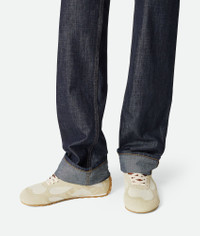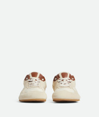 Low-top lace-up sneaker in soft suede and lightweight nylon. Product Details - Suede and nylon lace-up sneaker with leather trims - Material: Calfskin, lambskin, polyester, polyamide - Lining: Calf leather - Color: Sea Salt/Caramel - Rubber outsole - True to size - Made in: Italy - Product code: 838384V3MS29321