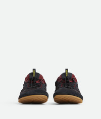 Product Details - Suede and nylon sneaker with leather trims - Drawstring closure - Lining: Lambskin - Color: Black/Dark Apple Candy - Rubber outsole - Made in: Italy - Product code: 856046V65D11021 Material - Material: Calfskin, polyester Size & Fit - True to size
