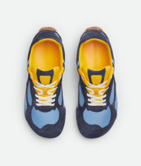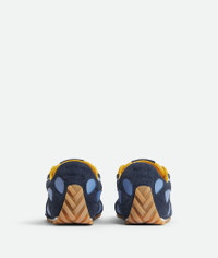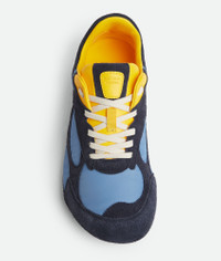Low-top lace-up sneaker in soft suede and lightweight nylon. Product Details - Suede and nylon lace-up sneaker with leather trims - Material: Calfskin, lambskin, polyester, polyamide - Lining: Calf leather - Color: Abyss/Ice/Egg Yolk - Rubber outsole - True to size - Made in: Italy - Product code: 838384V3MS24290