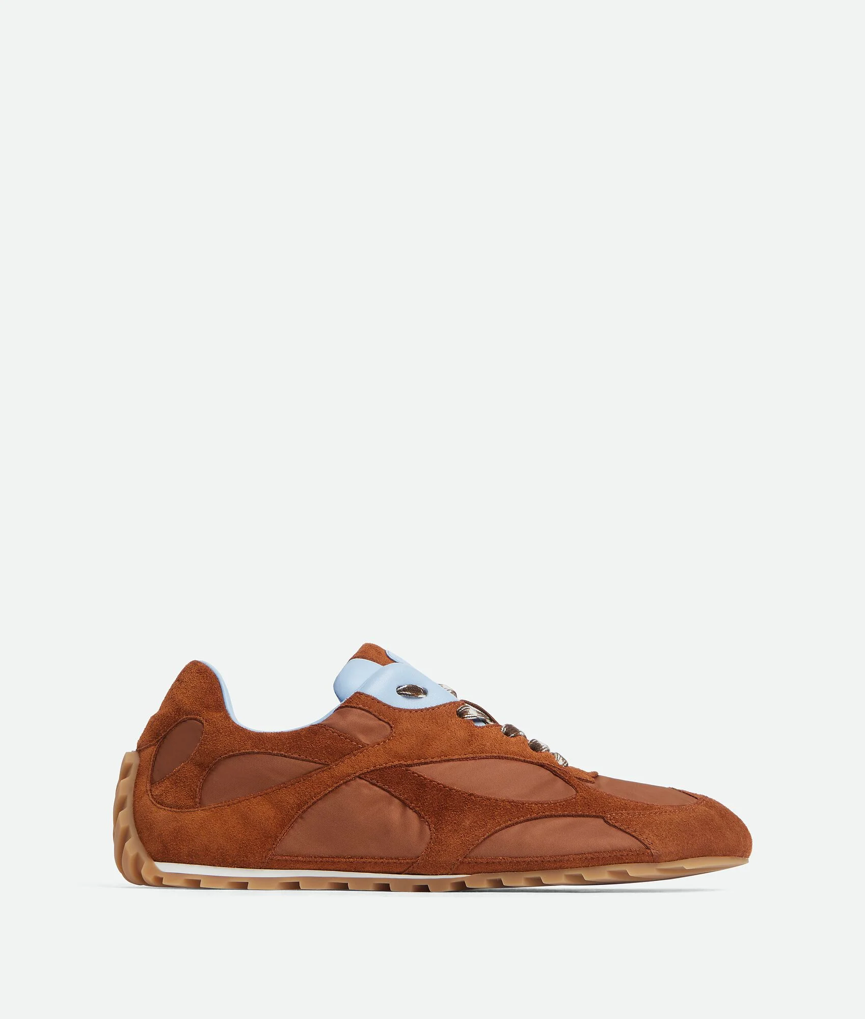 Low-top lace-up sneaker in soft suede and lightweight nylon. Product Details - Suede and nylon lace-up sneaker with leather trims - Lining: Lambskin - Color: New Amber/Iceberg - Rubber outsole - Made in: Italy - Product code: 838384V3MS22589 Material - Material: Calfskin, lambskin, polyester, polyamide Size & Fit - True to size