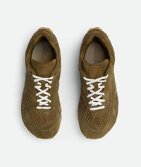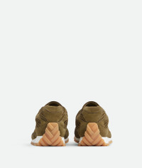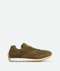 Runner sneaker in weathered suede and lightweight technical mesh. Product Details - Weathered suede and mesh lace-up sneaker - Material: suede calfksin - Lining: Calfskin - Color: Olive Oil - Rubber outsole - We recommend taking a size up - Made in: Italy - Product code: 797306V4JE13310