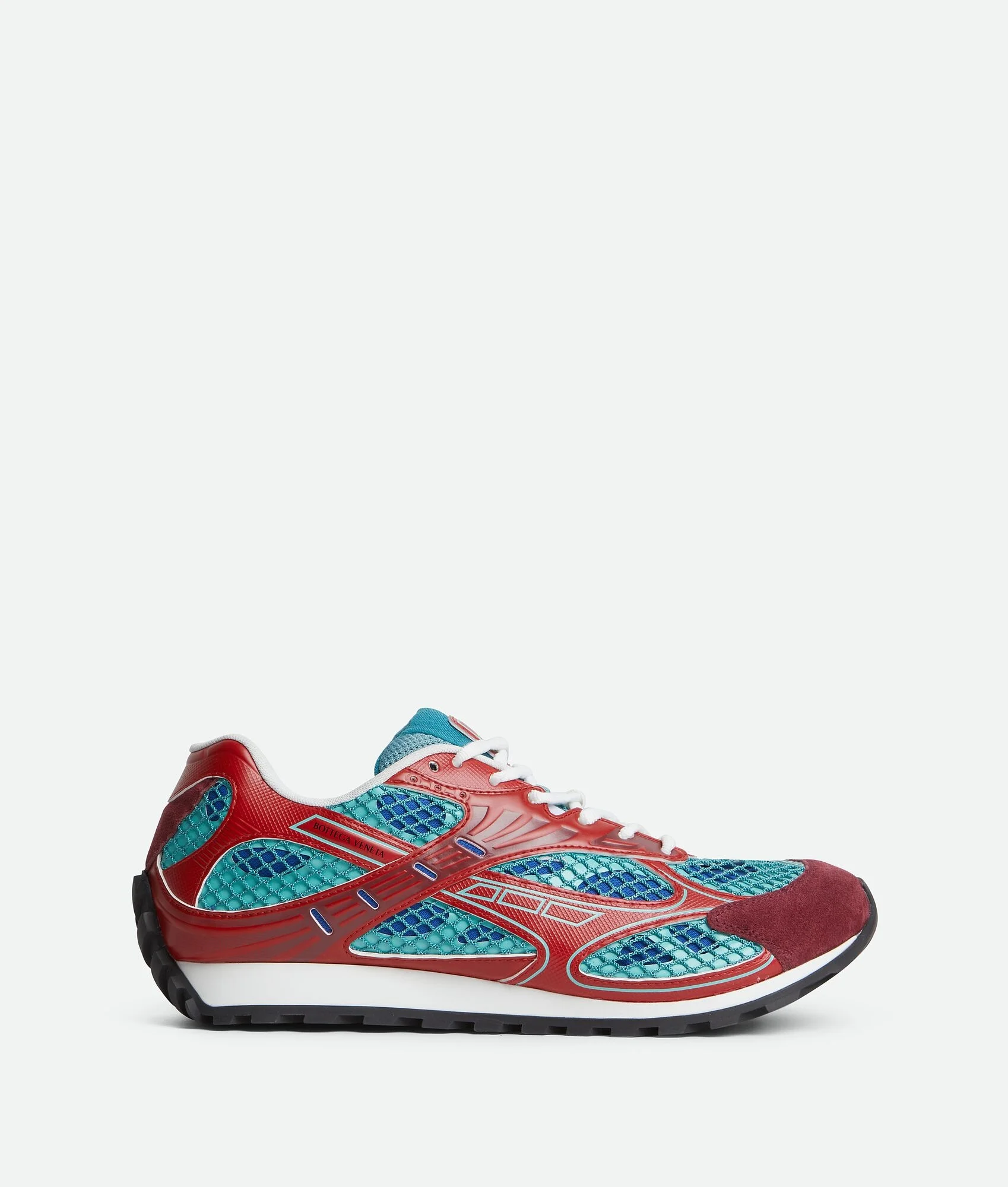 Runner sneaker in lightweight technical fabric, suede and mesh. Product Details - Technical materials and suede lace-up sneaker - Material: Polyurethan, cotton, calfskin, nylon - Lining: Technical fabric - Color: Turquoise/Cherry - Rubber outsole - We recommend taking a size up - Made in: Italy - Product code: 817485V55B04610