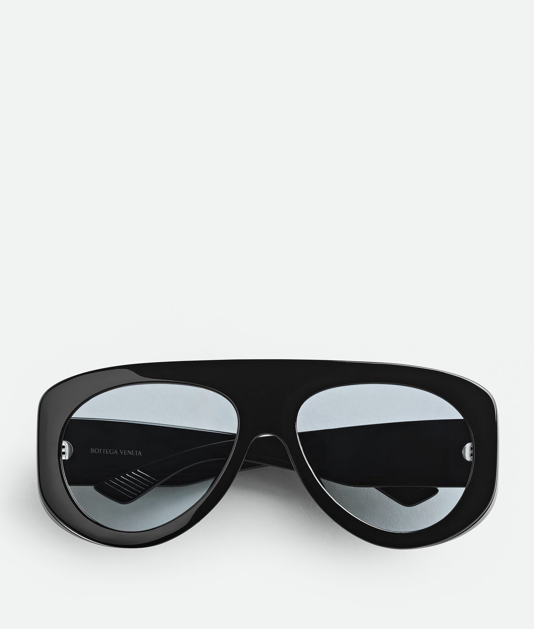 Aviator sunglasses in injected acetate. Product Details - Metal wire that goes all around the frame - On the side there is a spoiler to protect the face from the sun - Lenses made from polyamide with 39% bio-based content - BV1362S 004 - Material: Injected acetate - Color: Black/Light Blue - Made in: Japan - Product code: 821497VBL801100