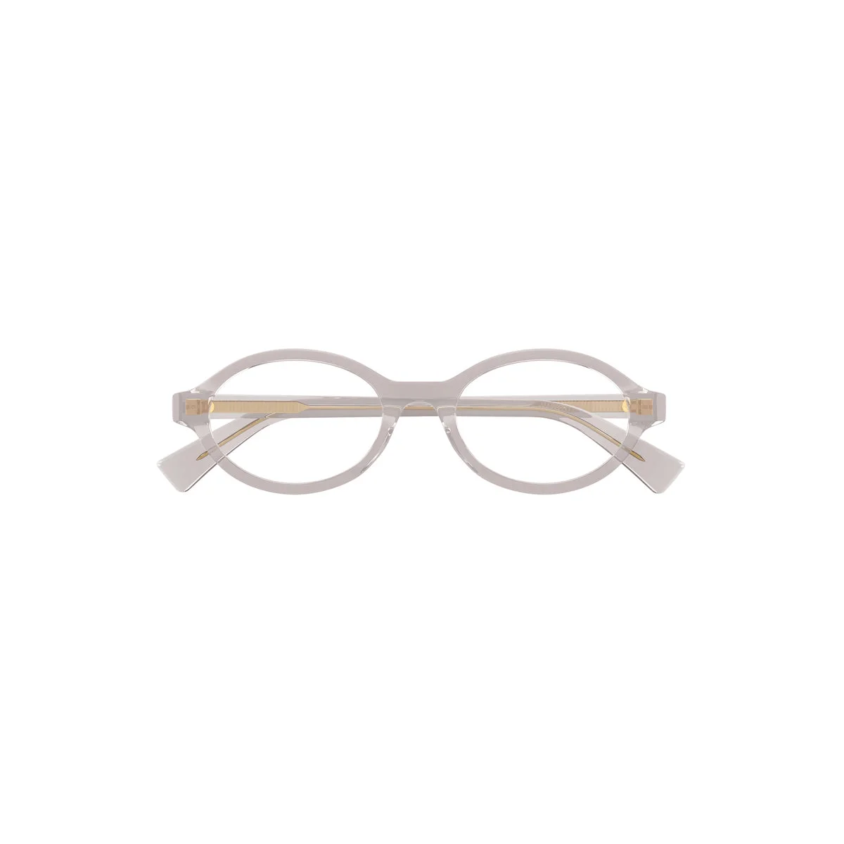 The Oval Eyeglasses in Grey by Bottega Veneta is a refined expression of contemporary femininity and craftsmanship. These eyeglasses, made in Japan, feature a grey recycled acetate frame with an exposed gold metal wirecore, creating a subtle contrast and adding structural elegance to the design. The signature Bottega Veneta gold triangle detail on the temples adds a touch of iconic sophistication to the overall look. With their classic oval shape and clear lenses, these lightweight frames offer both comfort and a modern style perfect for everyday wear. Material: 100% Acetate Color: Grey Made in Italy Sku: BV1367O/004