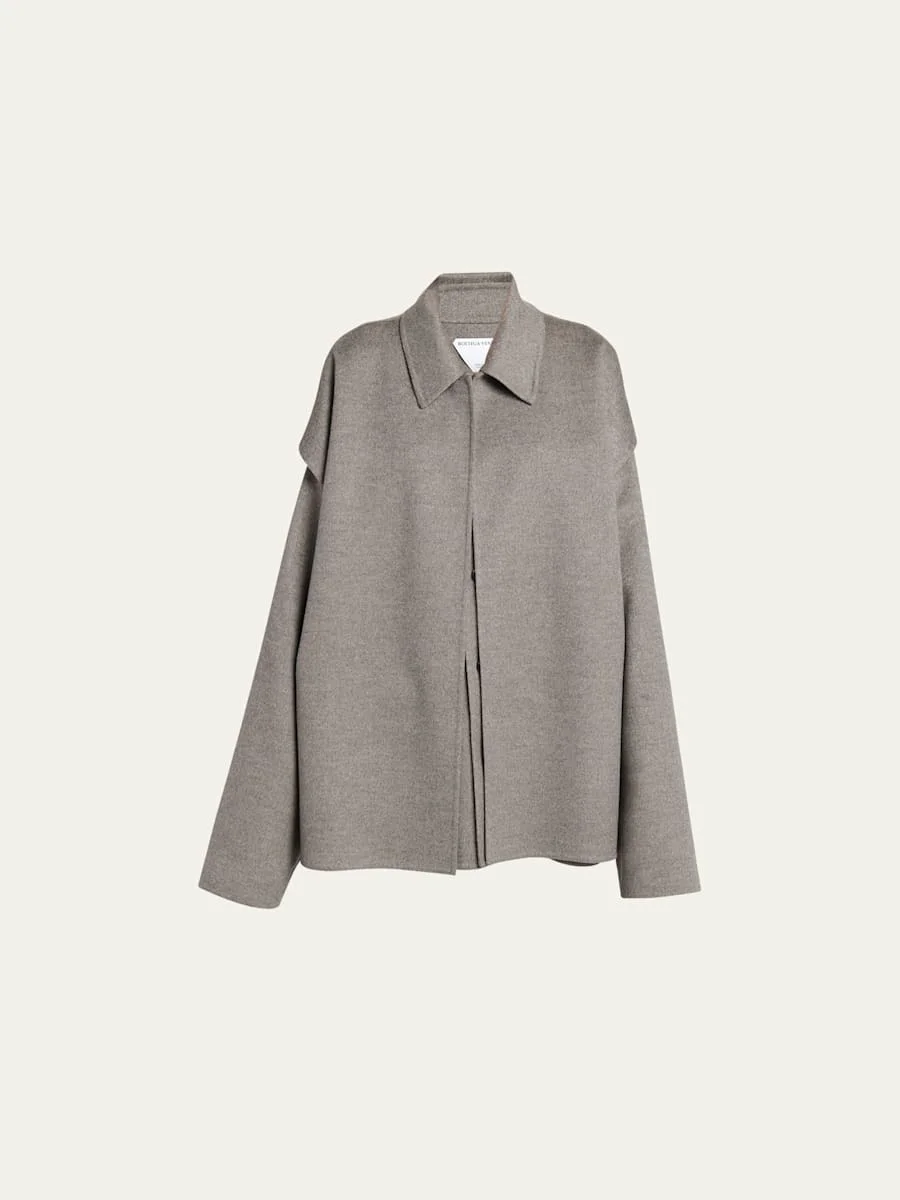 Bottega Veneta light doubleface jacket Spread collar Long wide sleeves Dropped shoulders Oversized fit Wool/cashmere Made in Italy
