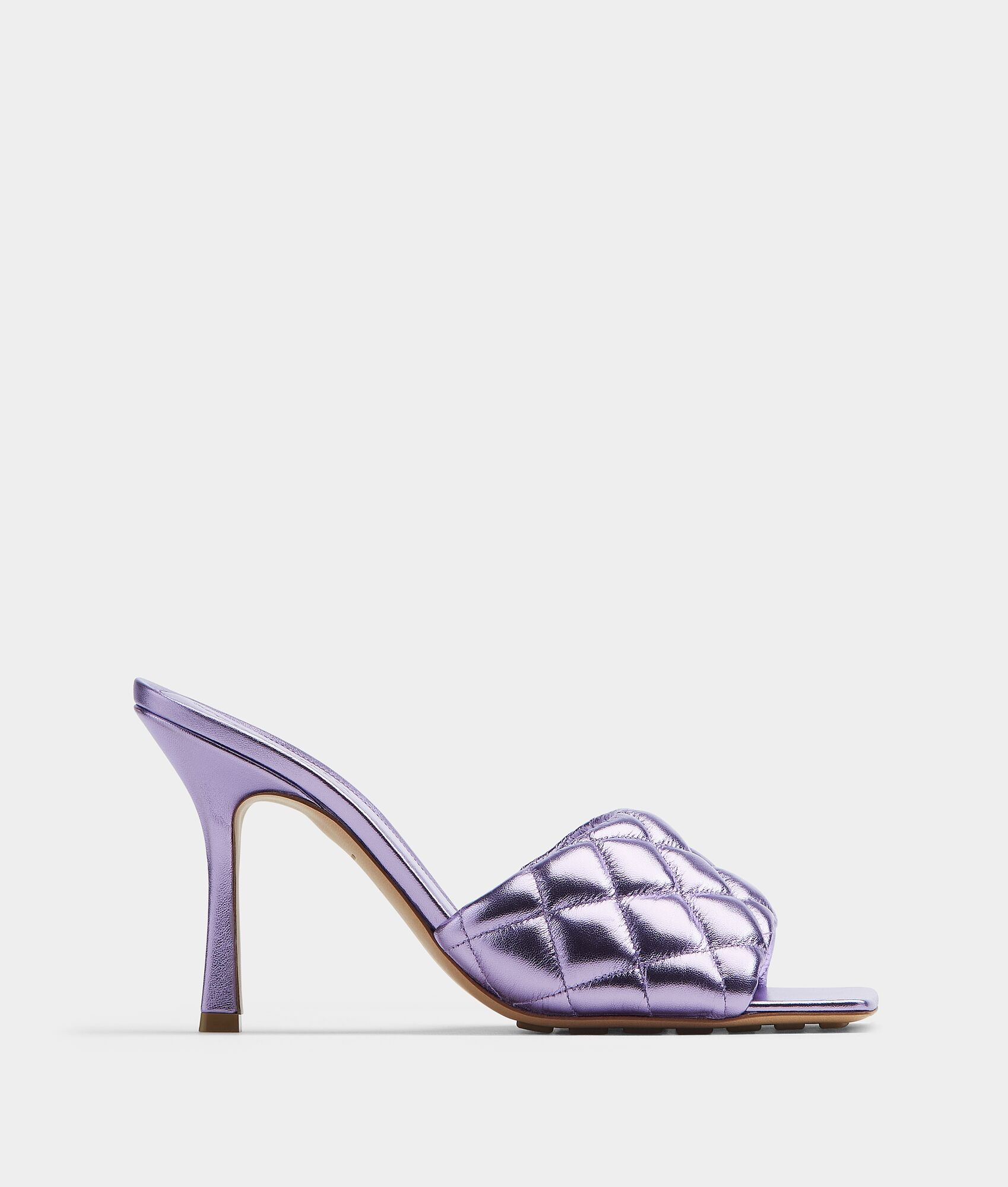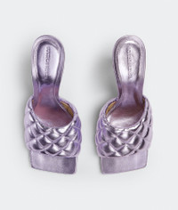 • Quilted metallised leather mules Material: 100% Lambskin • Lining: Lambskin • Color: Wisteria • Rubber-injected leather outsole Heel: 9 cm I 3.5" Made in: Italy