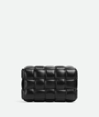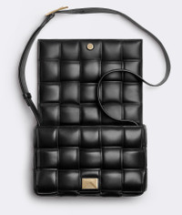 Cross-body bag made from soft lambskin leather using padded Intreccio Craftsmanship. Product details • Padded Intreccio leather cross-body bag • Single interior zip pocket • Metal closure Material: 100% Lambskin • Lining: Lambskin bonded Intreccio • Color: Black • Hardware: Gold finish • Height: 18 cm | 7.1" • Width: 26 cm | 10.2" • Depth: 8 cm | 3.15" • Strap drop: 50 cm | 20" Made in: Italy