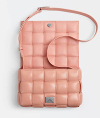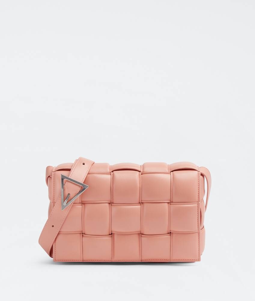 The Padded Cassette embodies the codes of Bottega Veneta: iconic Intrecciato weaving, high-quality materials and its signature colors. Elevated with a padded interpretation, handwoven in Italy with the finest Nappa lambskin. • Padded intreccio leather cross-body bag • Single interior zip pocket • Metal closure Material: 100% Lambskin • Lining: Bonded lambskin • Color: Peachy • Hardware: Gold finish • Height: 18 cm | 7.1" • Width: 26 cm | 10.2" • Depth: 8 cm | 3.1" • Strap drop: 50 cm | 19.7" Made in: italy