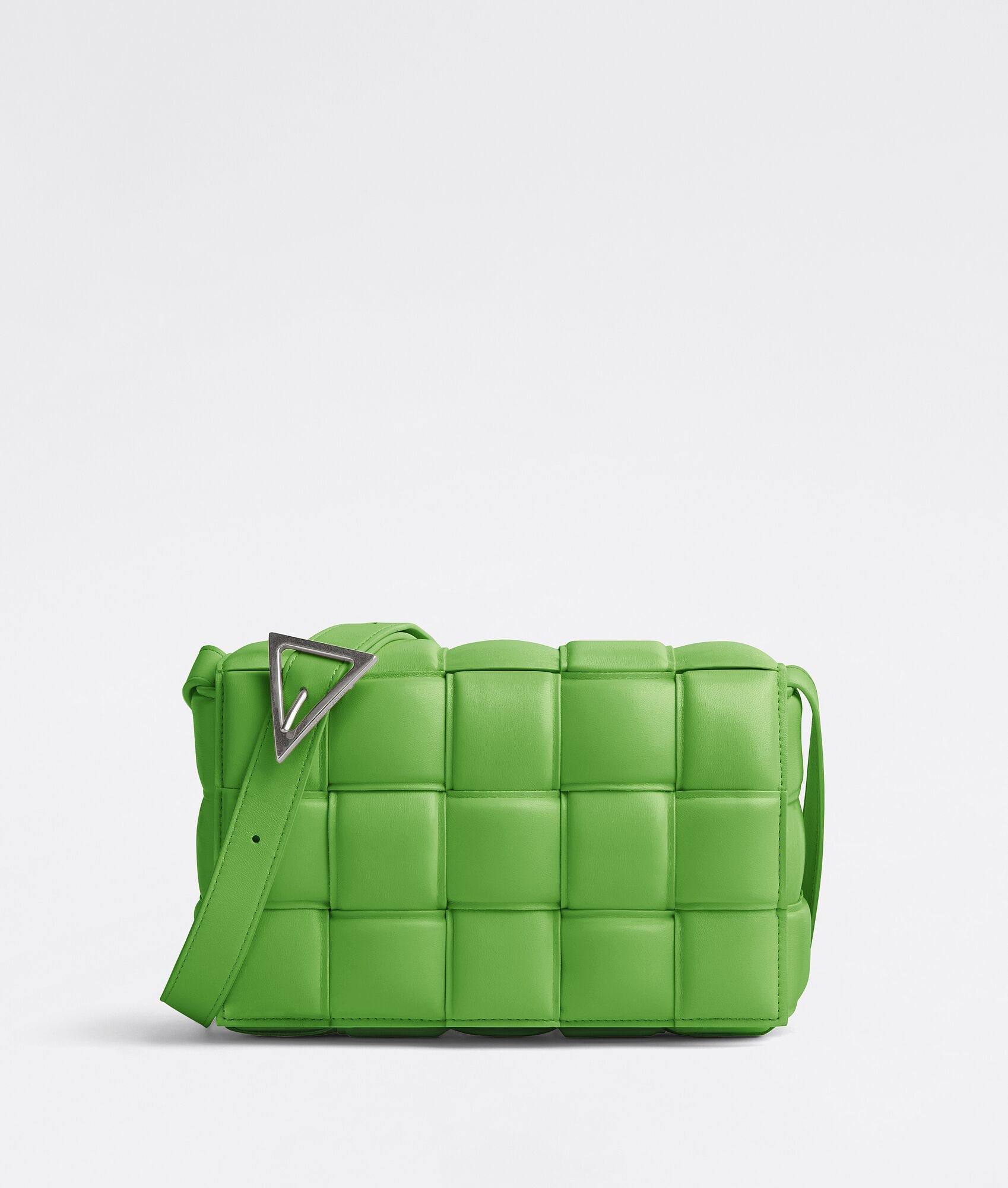 • Padded intreccio leather cross-body bag • Single interior zip pocket • Metal closure Material: 100% Lambskin • Lining: Bonded lambskin • Color: Acid Green • Hardware: Silver finish • Height: 18 cm | 7.1" • Width: 26 cm | 10.2" • Depth: 8 cm | 3.1" • Strap drop: 50 cm | 19.7" Made in: italy