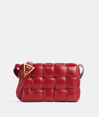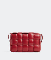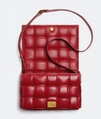 • Padded intreccio leather cross-body bag • Single interior zipped pocket • Metal closure Material: 100% Lambskin • Lining: Bonded lambskin • Color: Apple Candy • Hardware: Gold finish • Height: 18 cm | 7.1" • Width: 26 cm | 10.2" • Depth: 8 cm | 3.1" • Strap drop: 50 cm | 19.7" Made in: Italy