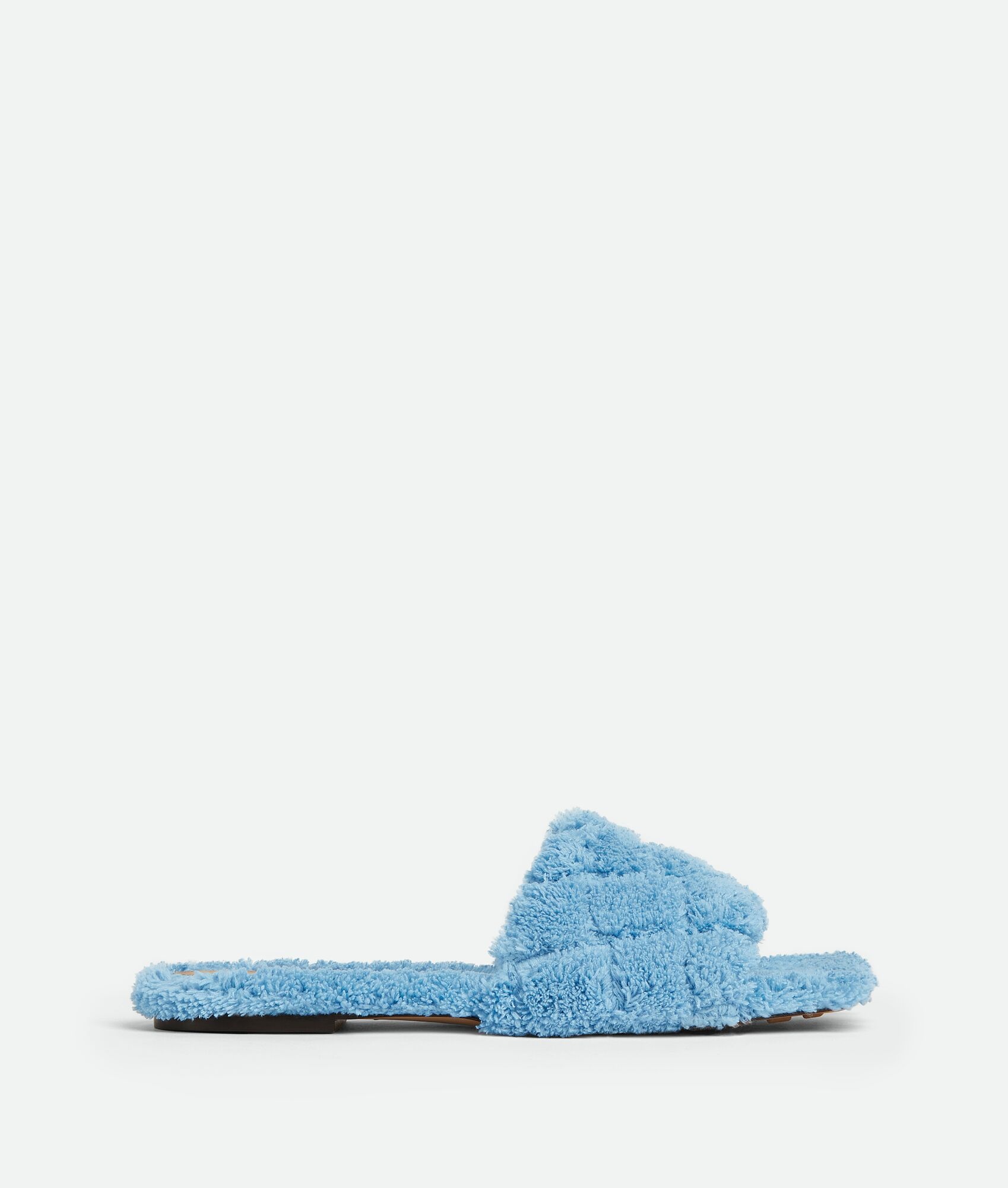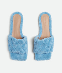 Quilted sponge fabric flat sandals. Product details • Quilted sponge fabric flat sandals Material: 100% Polyester • Lining: Lambskin • Color: Windswept • Bio-based rubber-injected and biodegradable leather outsole Made in: Italy