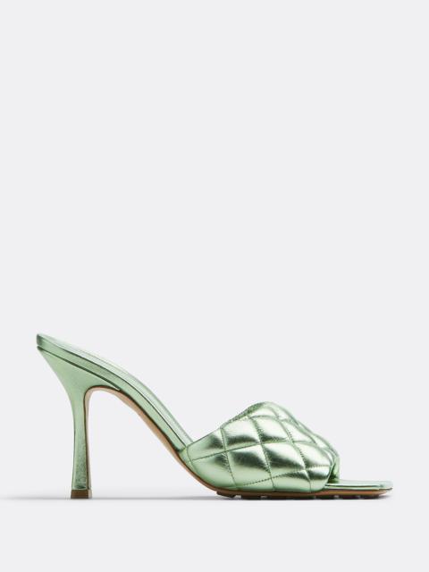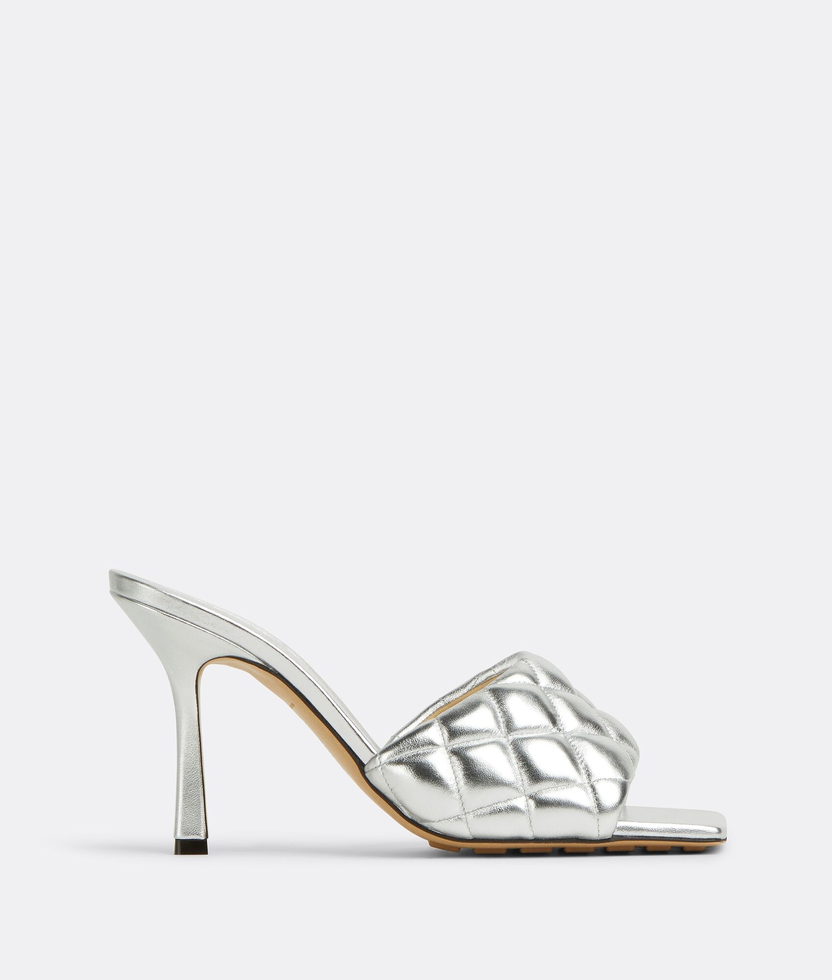 Quilted metallized leather mules. Product details • Quilted metallized leather mules Material: 100% Lambskin • Lining: Lambskin • Color: Silver • Rubber-injected leather outsole • Heel: 9 cm | 3.5" Made in: Italy