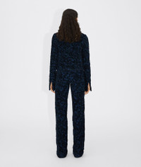 • Chenille bouclé straight pants • Elastic belt in same fabric with reverse embroidered logo on the inside • Zipper, button, and hook closure Material: 87% Viscose, 7% Polyamide, 5% Cotton, 1% Elastane • Color: Blue/Black/Vamp Made in: italy
