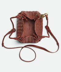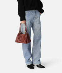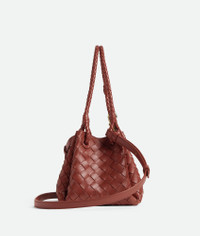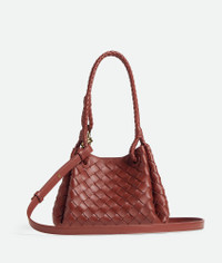 Shoulder bag in supple Intrecciato leather with signature knot detail and detachable Product Details - Small Intrecciato leather shoulder bag with detachable cross-body strap - One main compartment - Magnetic tab closure - Material: Lambskin - Lining: Lambskin bonded Intrecciato - Color: Sapele - Hardware: Brass finish - Height: 16.5 cm | 6.5" - Width: 20cm - Depth: 17 cm | 6.7" - Handle drop: 20cm - Strap drop: 55cm - Made in: Italy - Product code: 796569VCPPT2506