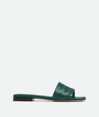 Flat mule sandal in soft Intrecciato leather. Product Details - Intrecciato leather flat mule sandal - Lining: Lambskin - Color: New Emerald Green - Rubber injected leather outsole - Made in: Italy - Product code: 837737V2ED03134 Material - Material: Lambskin