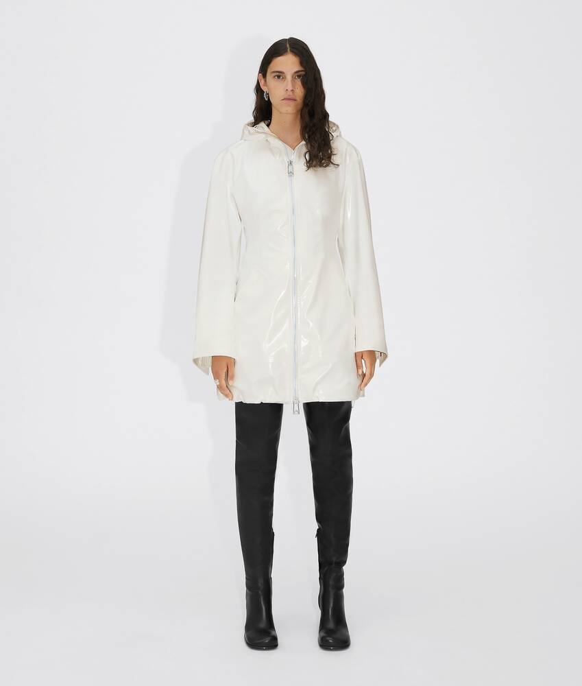 • Glossy rubber hooded parka • Detachable intrecciato cotton terry gilet liner • Heat-sealed seams • Zip closure • Relaxed fit Material: 59% Polyurethane, 41% Polyester • Color: White Made in: italy