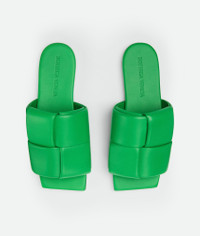 • Padded Intreccio leather flat mules Material: 100% Lambskin • Unlined • Color: Parakeet • Bio-based rubber-injected and biodegradable leather outsole Made in: Italy