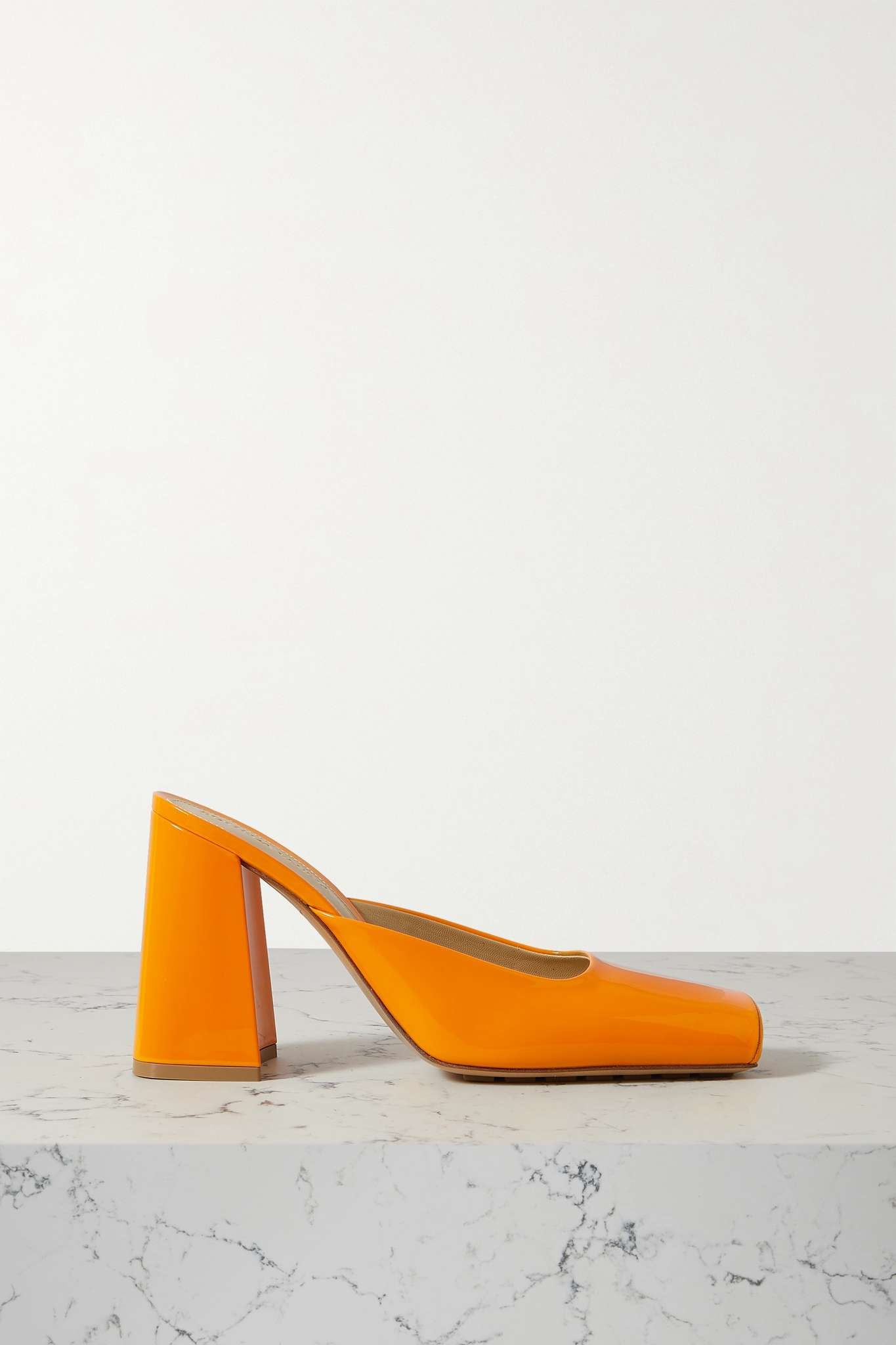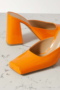 - Heel measures approximately 105mm/ 4 inches - Orange patent-leather (Calf) - Slip on - Designer color: Tangerine